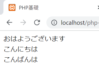 3.     echo “おはようございます<br>”;